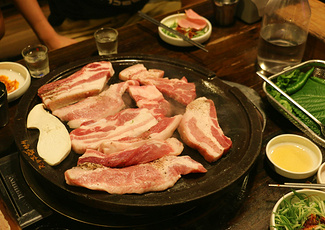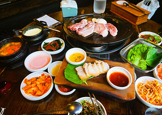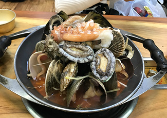 这两家都在济州水上星球附近,Dombe豚一直深受当地人的喜爱,这里的黑猪肉可不是简单的烤着吃,而是采用济州岛传统方式制作,在煮的过程中除掉了油脂,美味又利于减肥。三姓穴海鲜锅,将新鲜的甚至是活着的海鲜直接放进锅子里进行烹煮,最大程度的保持了食材的新鲜程度。各类海鲜贝类混在一起,加上浓郁的酱汁,实在是海鲜爱好者不能错过的饕餮盛宴。【Dombe豚(黑猪肉街店)图@离开月半弯;三姓穴海鲜锅图@ET佬顽童】