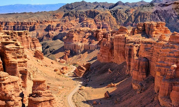 査恩峡谷(Charyn Canyon)属于哈萨克斯坦査恩国家自然公园,峡谷延伸近80公里长,30至100多公尺深。它的岩层和颜色类似美国亚利桑那州的大峡谷,并且有引人入胜的红土丹霞地貌,相信这里一定可以吸引你的眼球。