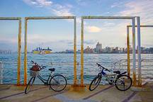 位于高雄港西南方、四面环海的旗津半岛是高雄地区最早发展之地,这里有许多文化古迹,能让人尽情享受阳光、海水与沙滩,忘却烦忧,此外,岛上还保留了上世纪 50 年代风行的三轮车,让游客体验坐人力车的乐趣。