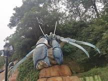 在海边欣赏极佳的海岸风光,与园内的各种婚庆雕塑合影。