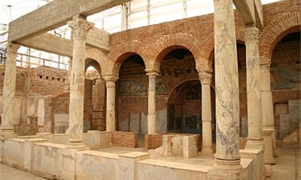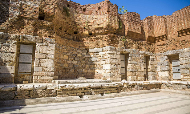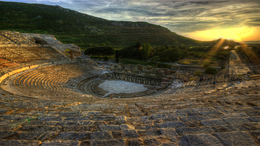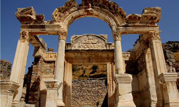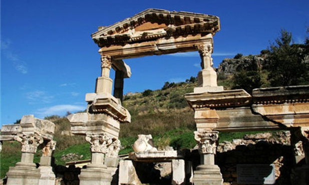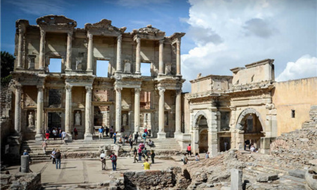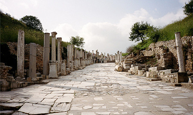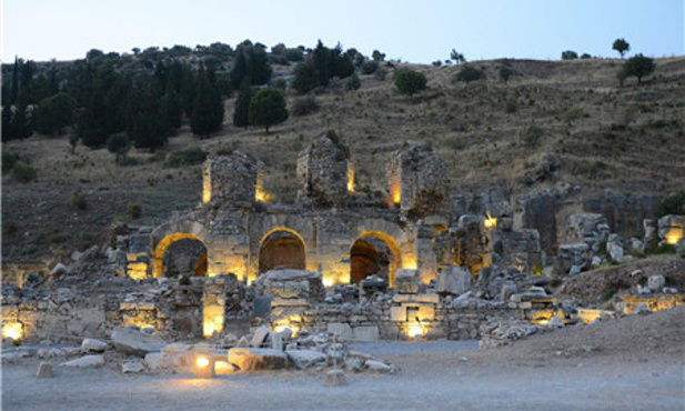以弗所古城较小,所有景点步行可达。早上从旅馆出发,达到以弗所,首先会看到的是音乐厅,大厅主要用来召开市政会议,这座曾经奢华无比的建筑曾经有过引以为荣的大理石座椅和精细的雕刻装饰。顺着音乐厅继续走,就会来到库瑞忒斯大道,这条大道是以弗所非常重要的一条路,沿着它步行,你会看到很多景点。你会在路上看到图拉真喷泉,泉水自雕像下方流出,溢上库瑞忒斯大道,将其清洗的干干净净。接下来,你会看到古罗马男厕,这是一个空旷的广场形建筑,沿着后墙设有一排用来蹲号的座位。继续沿着库瑞忒斯大道走,你就会看到装饰华丽的哈德良神庙。哈德良是图拉真的继任者。神庙当年配有木质屋顶和拱门,它的主拱门只由中央的一块拱心石支撑,尽管其并不含有水泥和石灰浆等成分,但它却保持了完美的平衡性。在它的对面,就是露台屋,你可以在这里看到罗马家庭的住宅。继续往前,就是庄严的赛尔苏斯图书馆,这座图书馆是用来存放12,000卷书籍,并作为埋葬塞尔苏斯的坟墓。最后,出了下层广场,映入眼帘的就是以弗所大剧场了。以弗所大剧场由希腊化时期的利西马科斯国王首次开始建设,罗马人在公元41年至公元117年间对其进行了重建。座位呈一定的坡度倾斜,拾级而上,这意味着上层的观众能有很好的视野和听觉效果。全剧场可以同时容纳25000人观看演出。