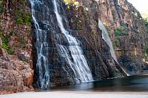 双子瀑布终年有水,可以在导游的带领下乘船或者徒步前往游览。注意双子瀑布水域禁止游泳,因时常会有咸水鳄鱼出没。