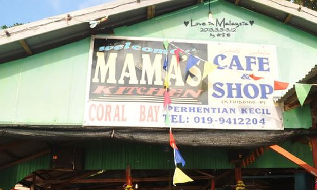 潜水过后可以来到附近的Mama's Place Restaurant。Mama's Chalet 的餐厅提供早午晚餐。由于价格实惠,每当用餐时间这里都是坐满客人。所以上菜会有点慢,在这吃饭耐心必须要有。妈妈的餐厅的食物实在十分美味,相比其他的餐厅背包客们比较能够负担得起,要在其他的餐馆吃到如此美味的菜你只有花更多的钱。建议的餐点包括蔬菜和米饭,尤其是烧烤。你可以在附近花10RM买啤酒,因为这家餐馆不提供酒精制品。