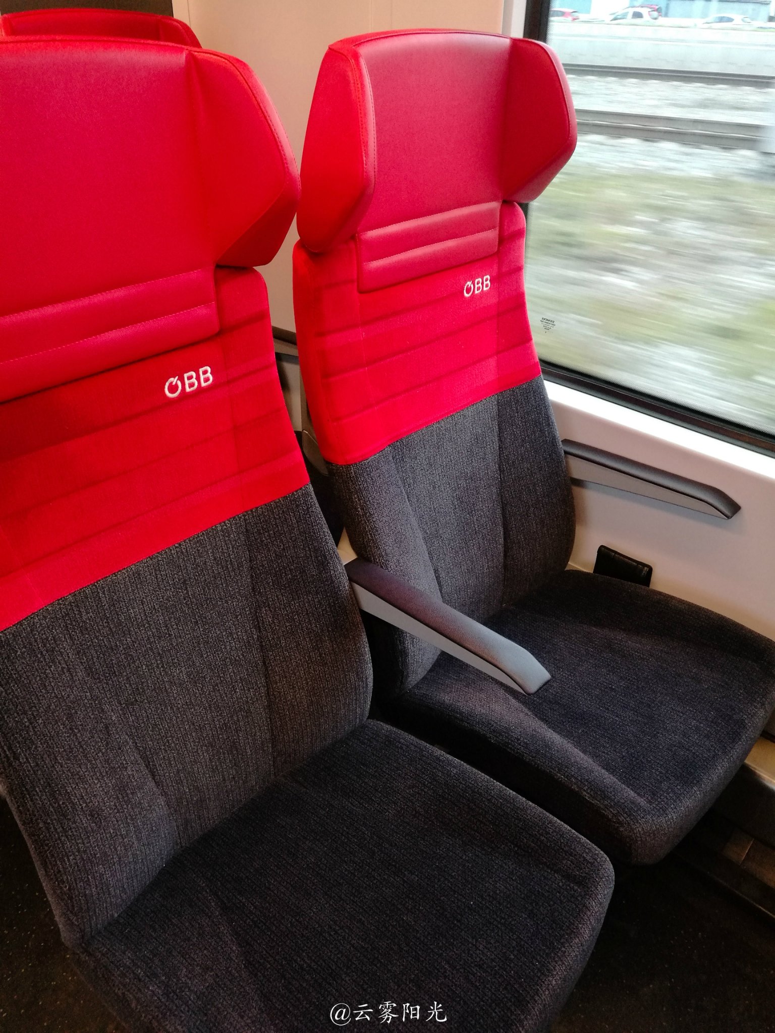 哈尔施塔特-维也纳 虽然车票上全是德语毛也看不懂,不过没关系,打印出来带好就是了,事实证明这玩意就是车票,好使,管用。 其他 购买夜间车票强制预定座位,通常车票价格内已包含订座费用 购买日间火车票只区分一等座或二等座,无需对号入座,通常也不需要预定座位,车上座位多得是,可以随意入座。如果想要预订座位的话,需要缴纳大约2-4欧元的订座费。据说只在圣诞节、复活节期间上座率会比较高,不过一般也只是差不多坐满而已,远远比不了大天朝的春运。然而,坐满且没有订座的我,还真就在圣诞前4天从边境城市费尔德基希(Feldkirch)开往萨尔茨堡的列车上感受了一回奥地利春运。 我们从费尔德基希上车后,车厢内是这样的