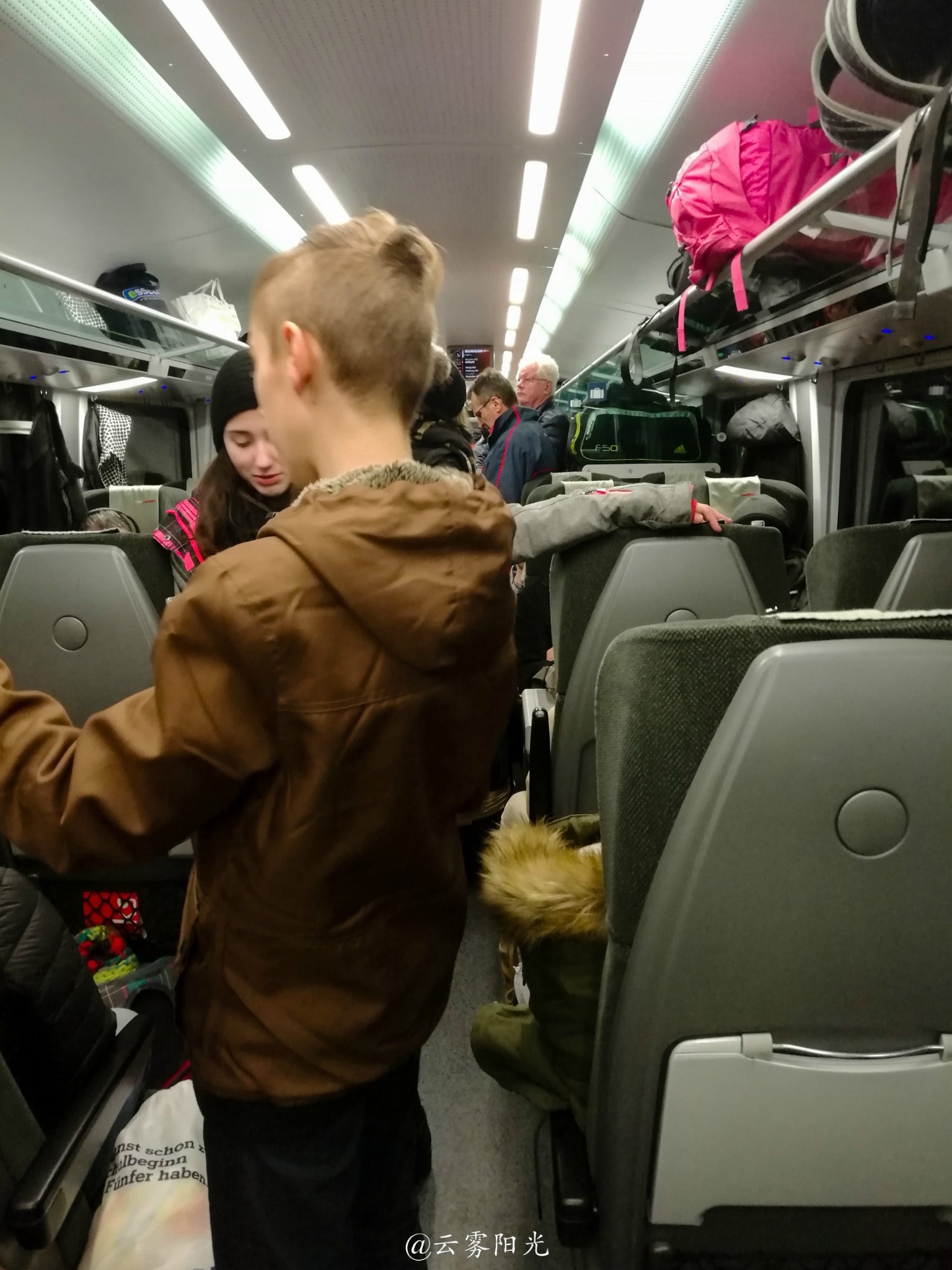 2、3站后,车上乘客逐渐增多,在因斯布鲁克的前一站达到顶峰,我所在的车厢内有10多位站立的乘客,此时车厢内是这样的