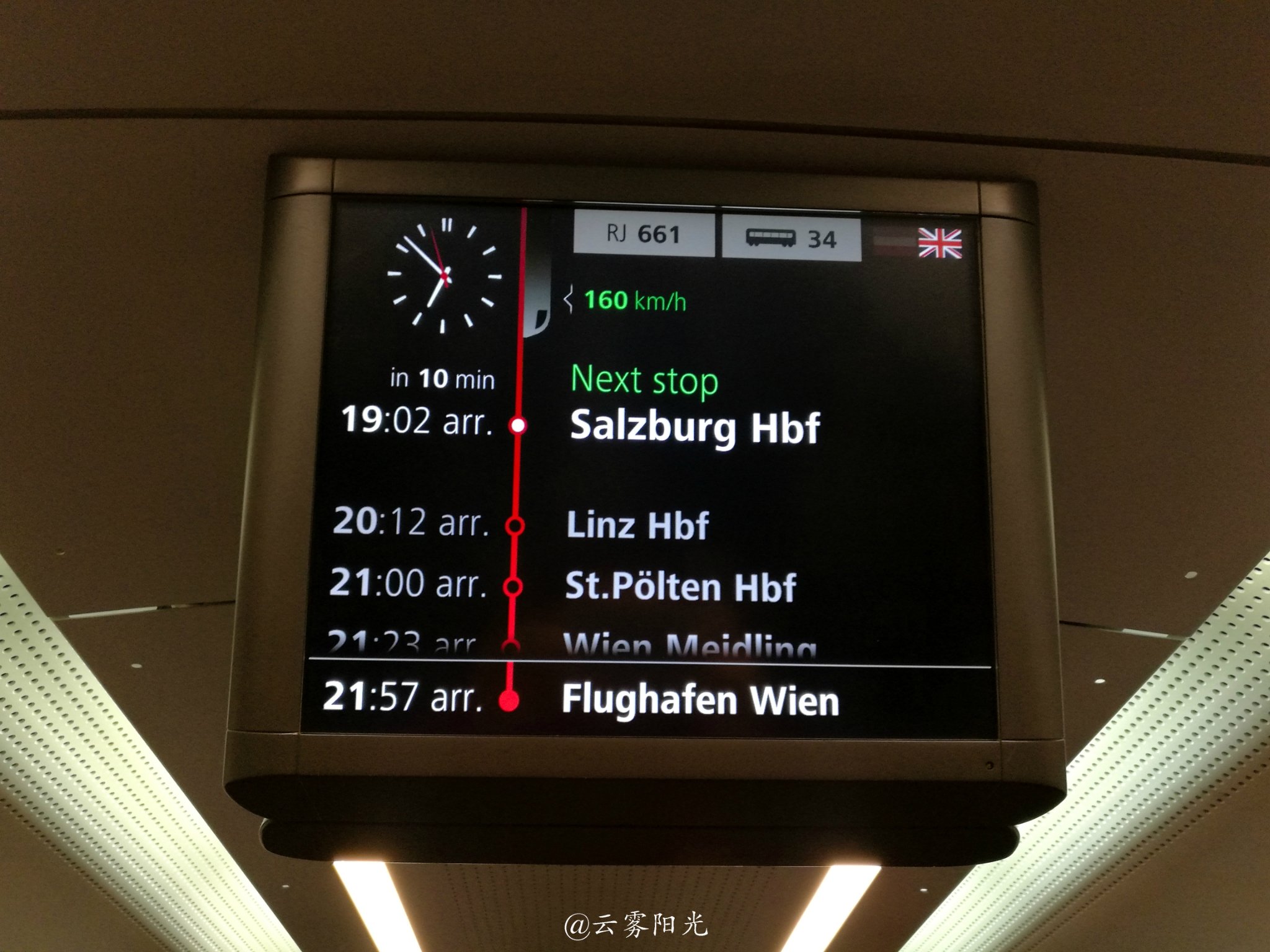 怕什么来什么,还真有人预订了我们的座位,还好是一个人,我只好起立让座,感受了一番奥地利铁路的站票。此时列车还距离萨尔茨堡还有1个多小时车程。还好有将近三分之二的乘客都在因斯布鲁克下了车,车厢重新回归了安静。