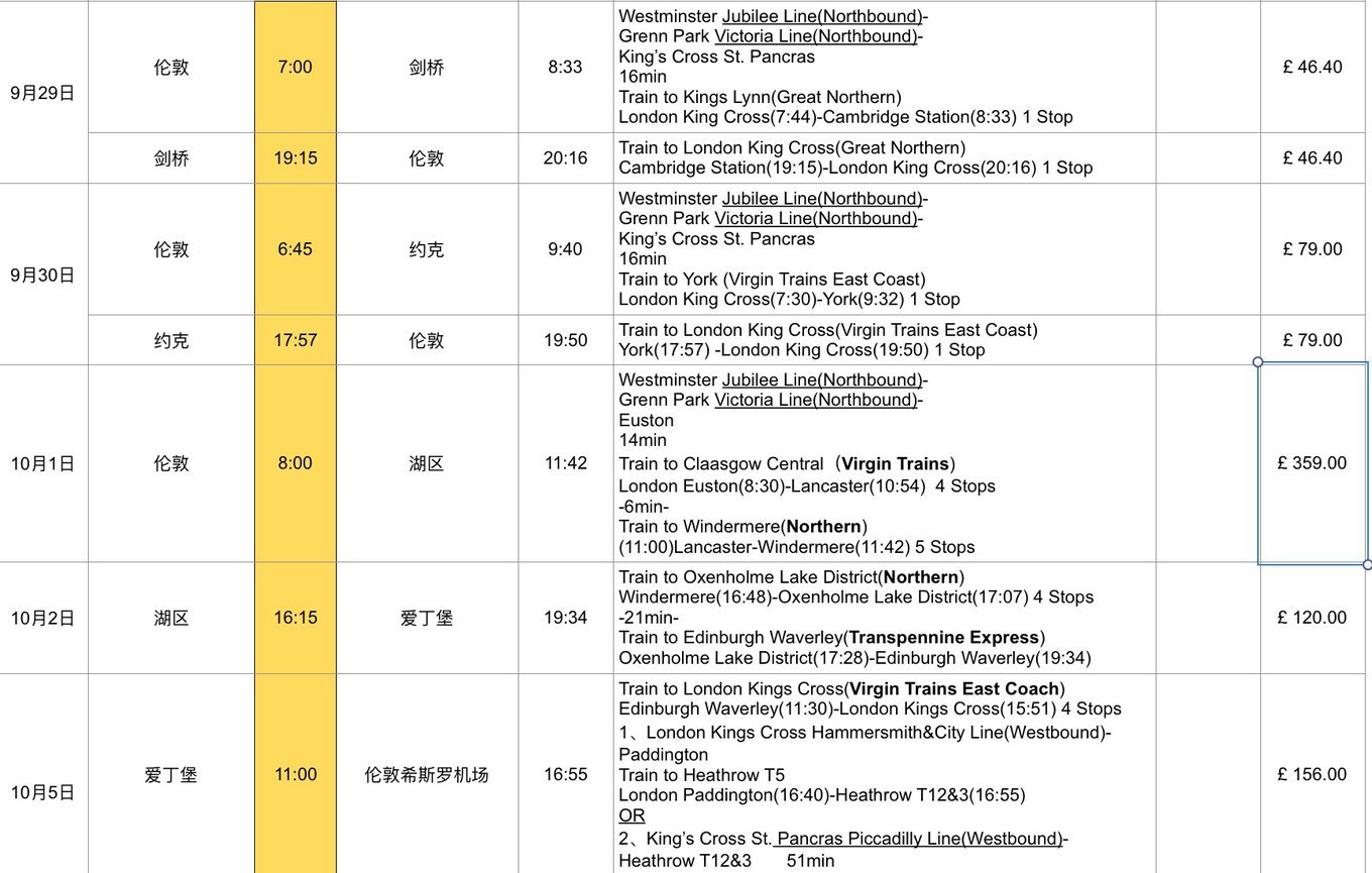 BritRail 英国铁路通票是探索英格兰、苏格兰和威尔斯的理想选择。 让你无限次搭乘列车,随时随地享受旅行的自由乐趣!在乘车日里,你可以自由换乘多架列车,想走多远就走多远。BritRail 英国铁路通票提供不同的优惠,让你的旅程更见丰富。凭借通票,以优惠价格搭乘欧洲之星和指定列车等等。先啰嗦一下有关它的相关知识: *种类 英国铁路连续使用通票和活期通票。连续使用票就是连续几天,中间不能间断;活期票就是在规定的15天或1个月内,任意几天使用,使用日期是要自己写在通票上。 1.适用于一等车厢和二等车厢 2.包含成人、儿童、长者、青年和团体票价 3.长者通票仅限一等车厢(自旅行第一天起满60岁旅客) 4.青年通票可乘坐一等车厢和二等车厢(自旅行第一天起16-25岁旅客) 5.英国铁路连续使用通票和活期通票适用于大不列颠铁路网(英格兰、苏格兰和威尔士),不适用于北爱尔兰。 6.可以享受伦敦机场快线服务:希思罗快线、盖特威克快线和斯坦斯特德Sky Train列车。 *退票 完全未使用的通票办理退票将扣除卖价15%退票费,此处15%以欧元为单位。 *订座 1. 座位预订仅可在当地火车票站预订 2. 可在通票涵盖的任意火车站预订您想乘坐的车次 3. 英国铁路不是所有车次都强制订座 *英国相关通票使用条件 1)通票必须在出票后6个月内确认,在英国国家车站办公室由铁路工作人员确认并在通票上填写护照号码。 2)首次登车前必须确认通票,经济通票团体旅客确认通票时,所有成员均必须在场。 3)首次乘坐火车前,旅客必须在日历上相应一栏中准确填写旅行日期。 -如何选择 终于说完了繁琐的规定,那么来说点实际的吧。作为游客,如果需要去三个以上的城市,我还是建议大家买一个pass吧,这样非常合算的。让大家看一个当时我测算的结果吧,这样算下来,光火车票就要880磅,合人民币大约要8000元左右吧。于是,我选择了1月内任意8天的通票,一个人也就合2800元左右,大大的省了5200大元啊。