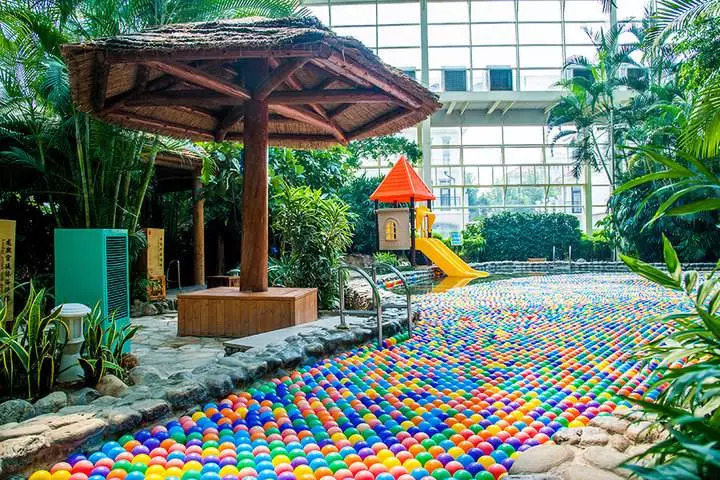 八达岭温泉度假村位于北京市延庆区延庆镇妫水北街,是一座集温泉疗养、商务会议接待、休闲娱乐为一体的旅游度假场所。由于是天然的地热资源,整个嬉水乐园室温恒定在29度,穿着泳衣感觉非常舒适,药浴池、嬉水乐园是这里的特色,很适合一家三口休闲。