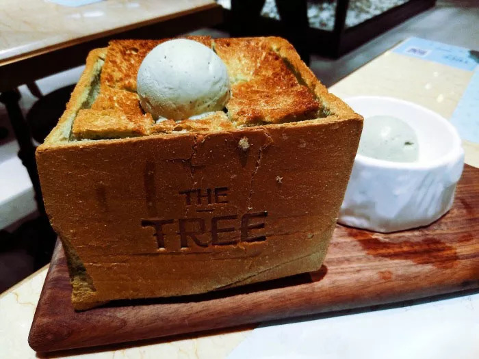 大树餐厅的蜂蜜抹茶厚多士是同品做的最好的。面包外脆里软,热着的厚多士时候蘸着凉凉的冰激凌特别享受。