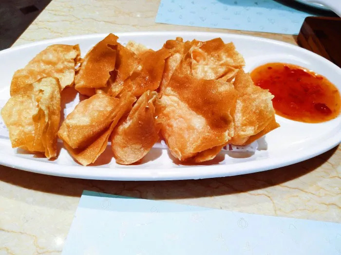 发现炸云吞变小了很多,不过蘸着甜辣酱超好吃,外酥里嫩。