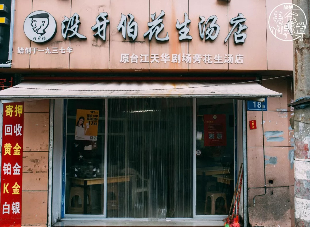 没牙伯花生汤店是老药洲街地标性门店。在1937年的时候,一对年老的夫妻推着车卖着花生汤,这对夫妻由于年纪大了牙齿已然掉光了,人们便称之为没牙伯花生汤。