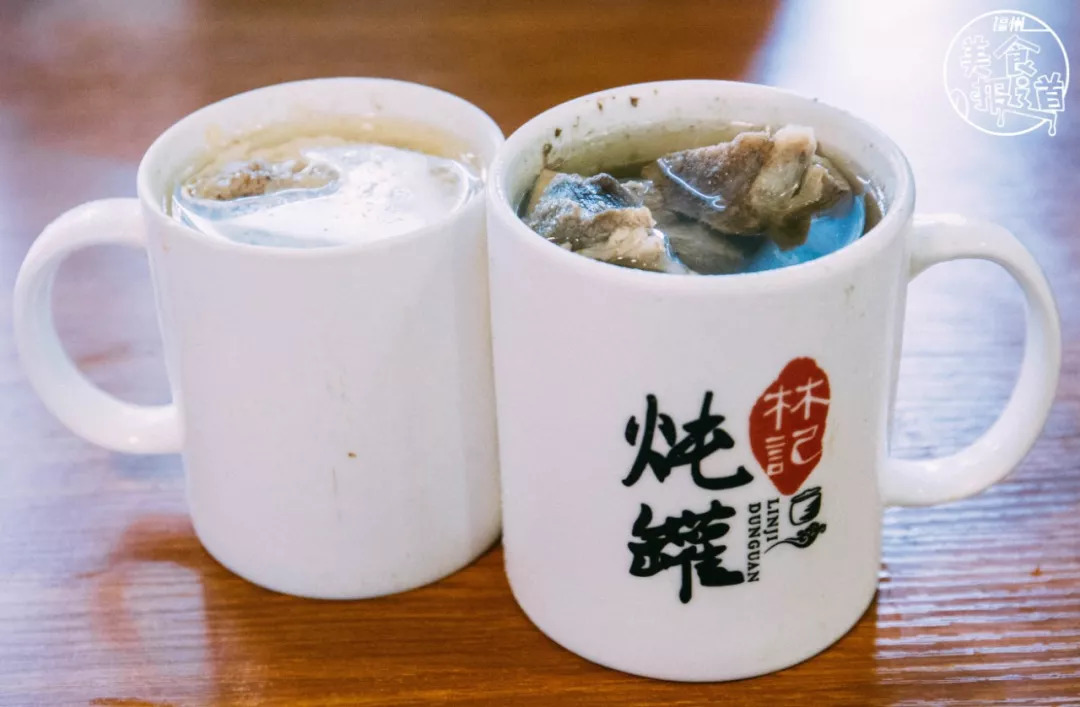 店里的炖罐一般会帮你倒到碗里在端上来,但我还是喜欢用杯装着的感觉。一方面是因为这样不容易凉,另一方面这更有吃炖罐的感觉。