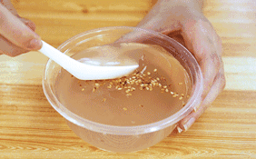 闷热的时候吃上一口冰凉爽滑的藕糕是再好不过的,清淡微甜的口感混着芝麻香气,令人欲罢不能。而每次吃却要提防黏糊糊的糕体沾到自己身上,费好大劲才能舀上完整的一勺呢。