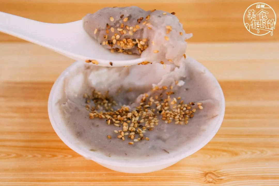 绵软香甜的芋泥,也是福州人十分喜食的甜点之一。顶上还撒了醇香的芝麻粒,使这道甜食的口感层次更加分明。