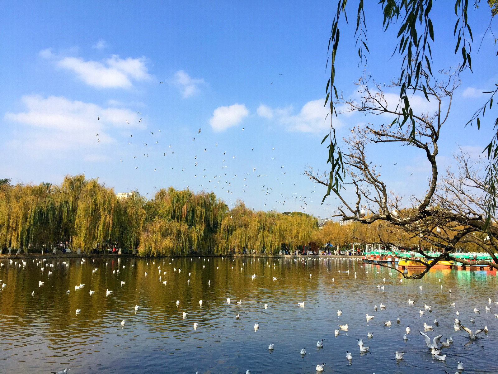 位于昆明市五华山西麓,有亭、台、回廊、曲桥等建筑,建筑精致玲珑。翠湖的秋美得不可方物,火红的枫叶、金灿灿的银杏组成了秋景,不用出市区就能轻松get秋天大片的地方!