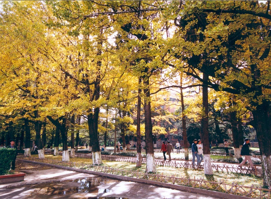 大学也是个赏秋的好去处,这里云大文渊楼到会泽院一带的银杏大道一到秋天,换上金黄色的外衣,满目金黄,无疑为学校增添了几分浪漫情怀。情侣们走在银杏大道上,也是一道亮丽的风景线。