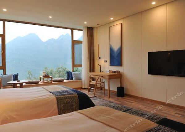 处于半山之上,可以看到喀斯特群山,风景很壮美,春秋两季风光更是如诗如画。每天早晨被林间的小鸟叫醒,夜晚又可以枕着星空入眠。在客栈里,还可以做做瑜伽、或是对山冥想。