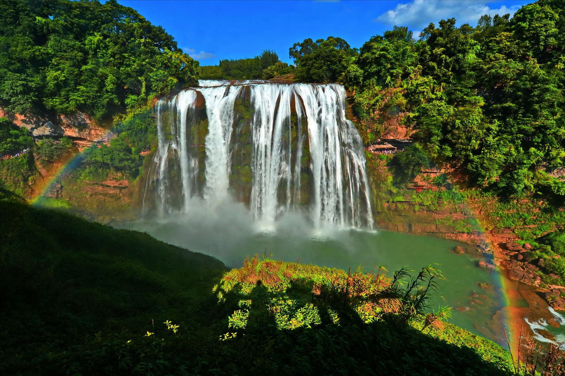 黄果树瀑布有多个观景位置,可以从不同角度去欣赏瀑布的雄、奇、险、秀,运气好的话,还能看到双道彩虹挂于瀑布之上。