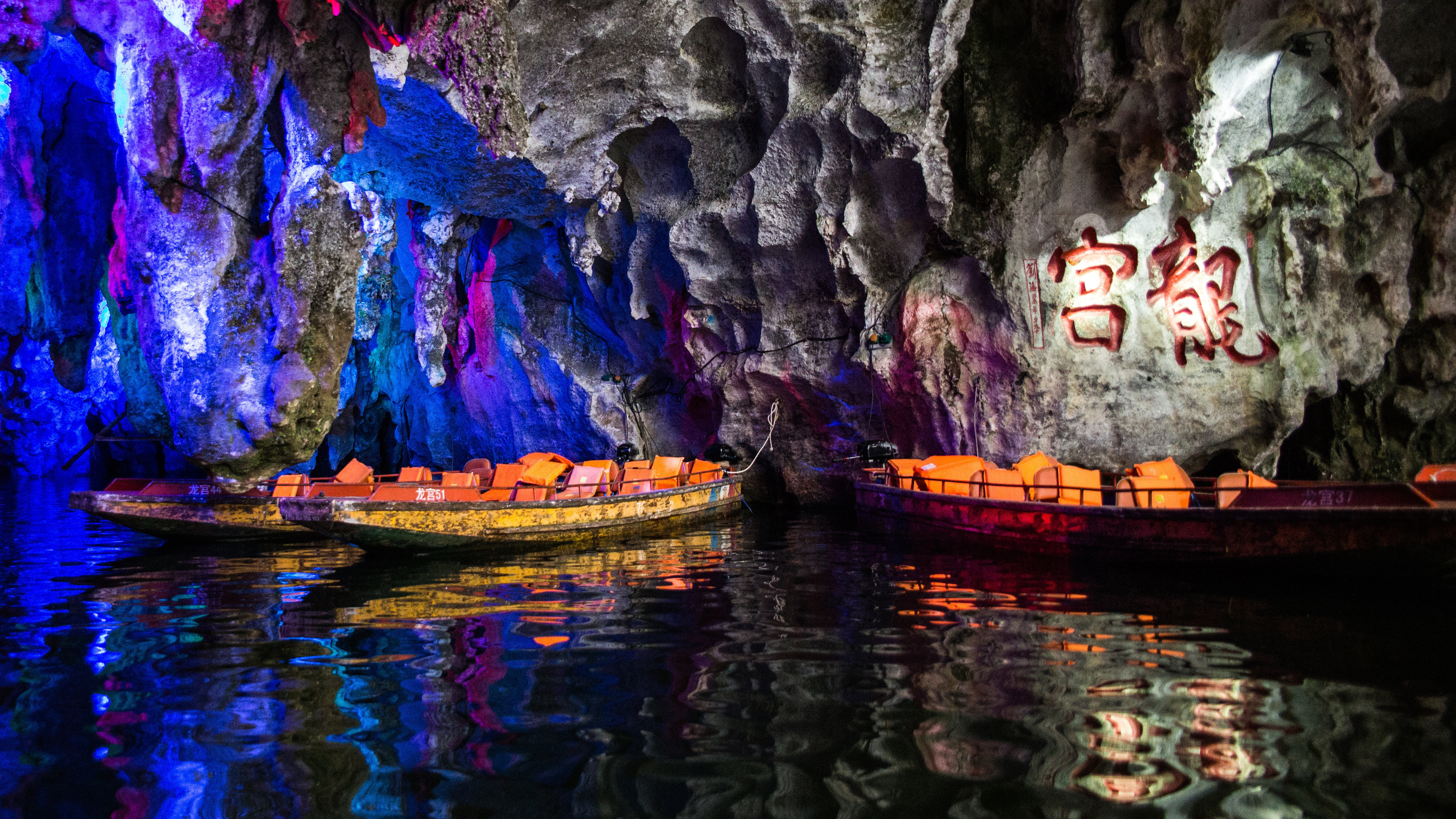这里可以体验乘坐小船进入溶洞,石钟乳、石笋姿态百千,灯光打造出更美妙的视觉体验。