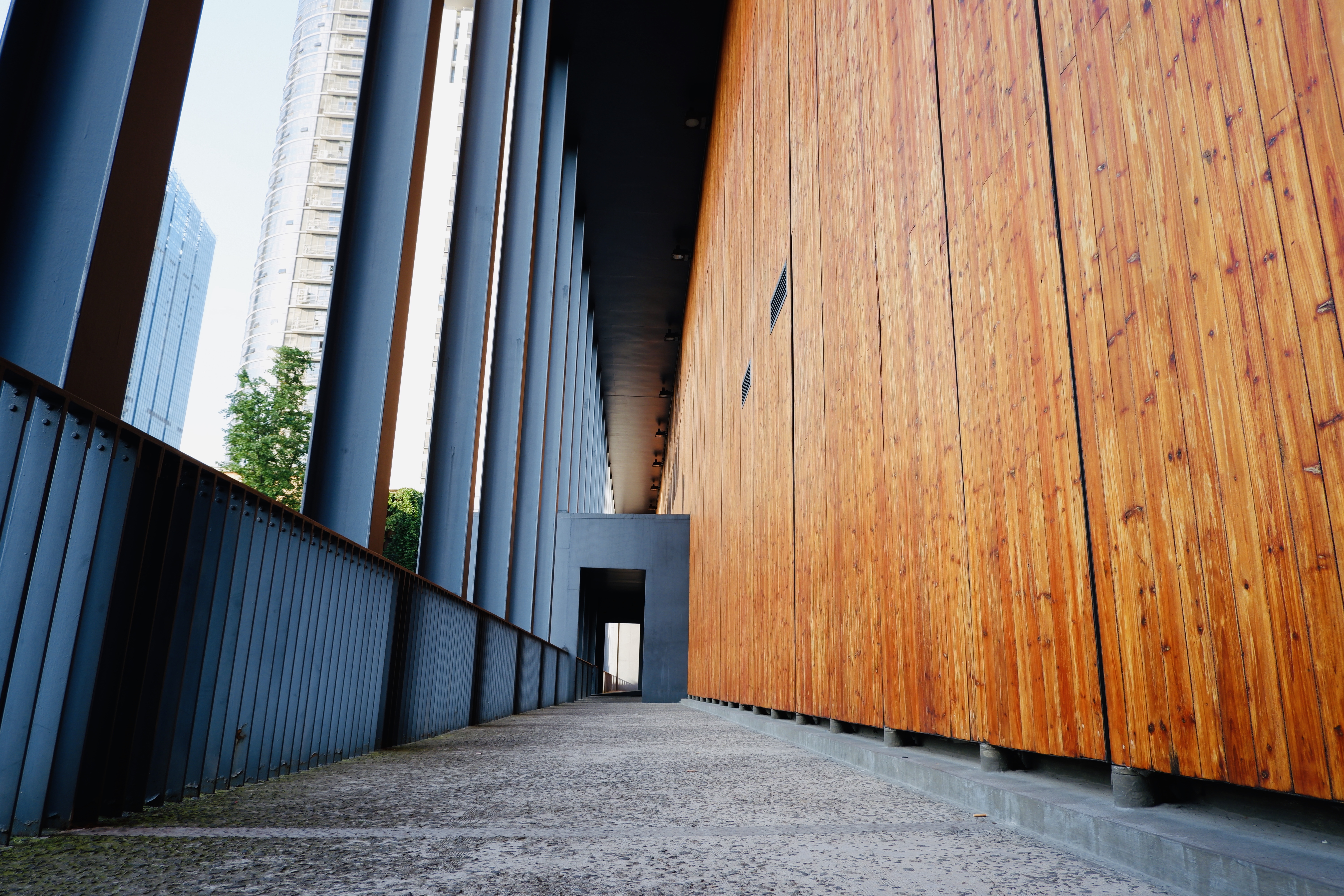 5,打卡外滩和王澎另一个作品:宁波美术馆 从宁波博物馆出来到外滩,不算很近,9公里左右,最好打车前往。 宁波美术馆位于老外滩的甬江边,原址是轮船码头,他的前身是码头航运大楼;王澎保留原有航运大楼的内部结果,结合美术馆的需求修改,他也表示“吐纳着城市与一条江的方向性应被小心地保护”,所以,原来的码头航运大楼被保留下来了。 下车以后,被我们立马就能看到的是那100扇高8米的杉木板门,装饰在100米长,6米宽的沿江长廊一侧,寓意是重建一种已经断裂的生活方式,王澎的建筑很本土化,给你一种老底子的感觉。 宁波美术馆旅行小tips:门票免费,建议游览时间:1-2小时;开放时间:9:00-17:00(16:30停止入场)周一闭馆;公交车:1路、4路、8路、19路、20路、331路、370路、541路至外滩站下。