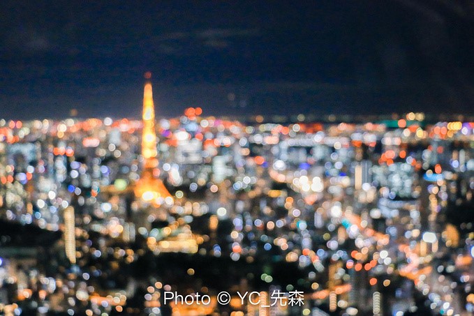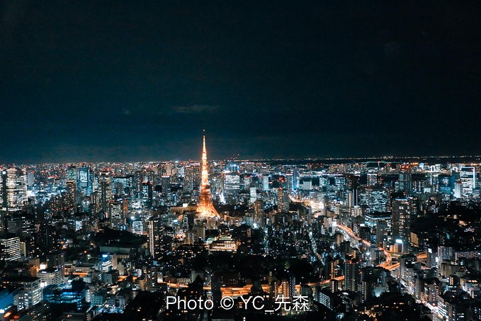 这里的机位有多经典就不赘述啦,站在观望台上眺望远方,看东京塔灯光璀璨,流动的车灯行程一道光带。