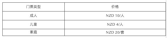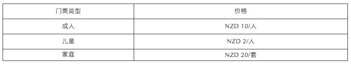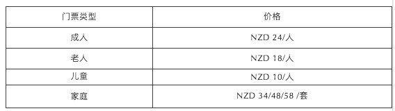 *儿童票年龄为5-14岁,老人票年龄为65岁以上 **家庭套票分1名成人+2名儿童、2名成人+1名儿童、2名成人+2名儿童这三类套餐,额外另加儿童需付NZD 5/人 联系电话:+64 3 547 4573 官网:www.wowcars.nz