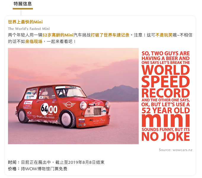 Source: wowcars.nz WOW博物馆自2001年起对外开放,主要展出有极富艺术气息的服装设计与复古范儿的老爷车。