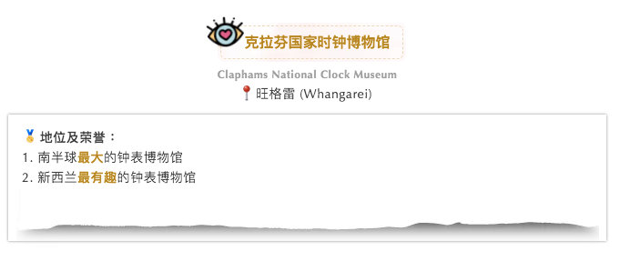 👀原图来源于克拉芬国家时钟博物馆收藏的时钟展品 地址:Town Basin, Dent Street, Whangarei 交通:距旺格雷市中心约4分钟步行路程 开放时间:9:00AM - 5:00PM *圣诞节期间休业 价格:
