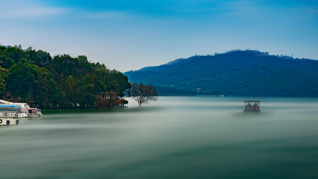 乘坐游船🛶,可一览湖光山色,三面环水一面着陆,犹如伸向湖中的一座小山,故被称之为湖里山景区。