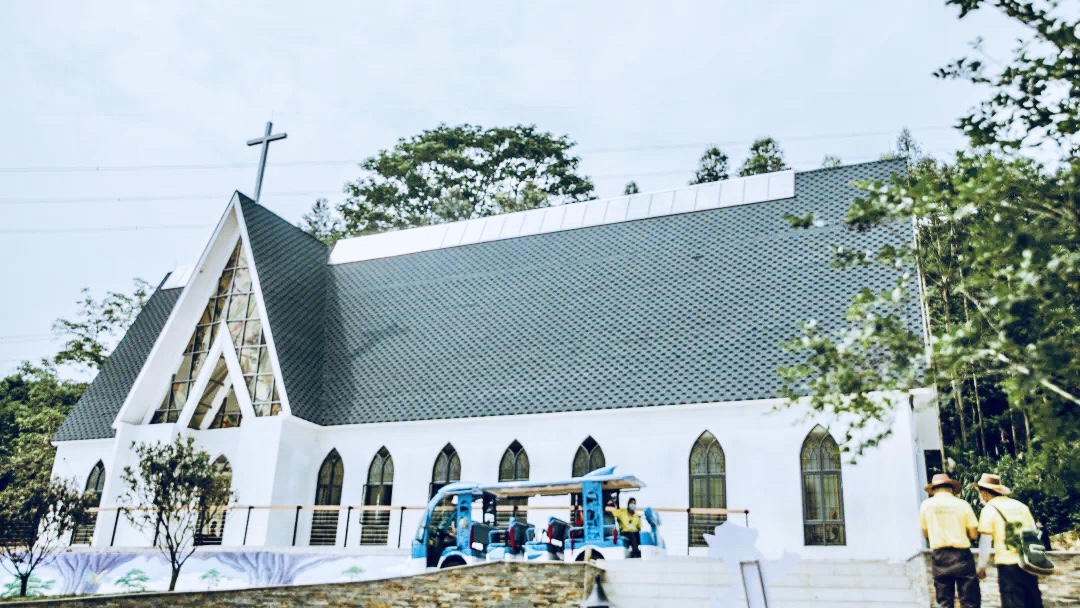五颜六色的七彩花田🌷和浪漫的婚礼教堂广场,悬挂的壁灯和玻璃花窗,充满浓郁异国风情的欧式浪漫气息。
