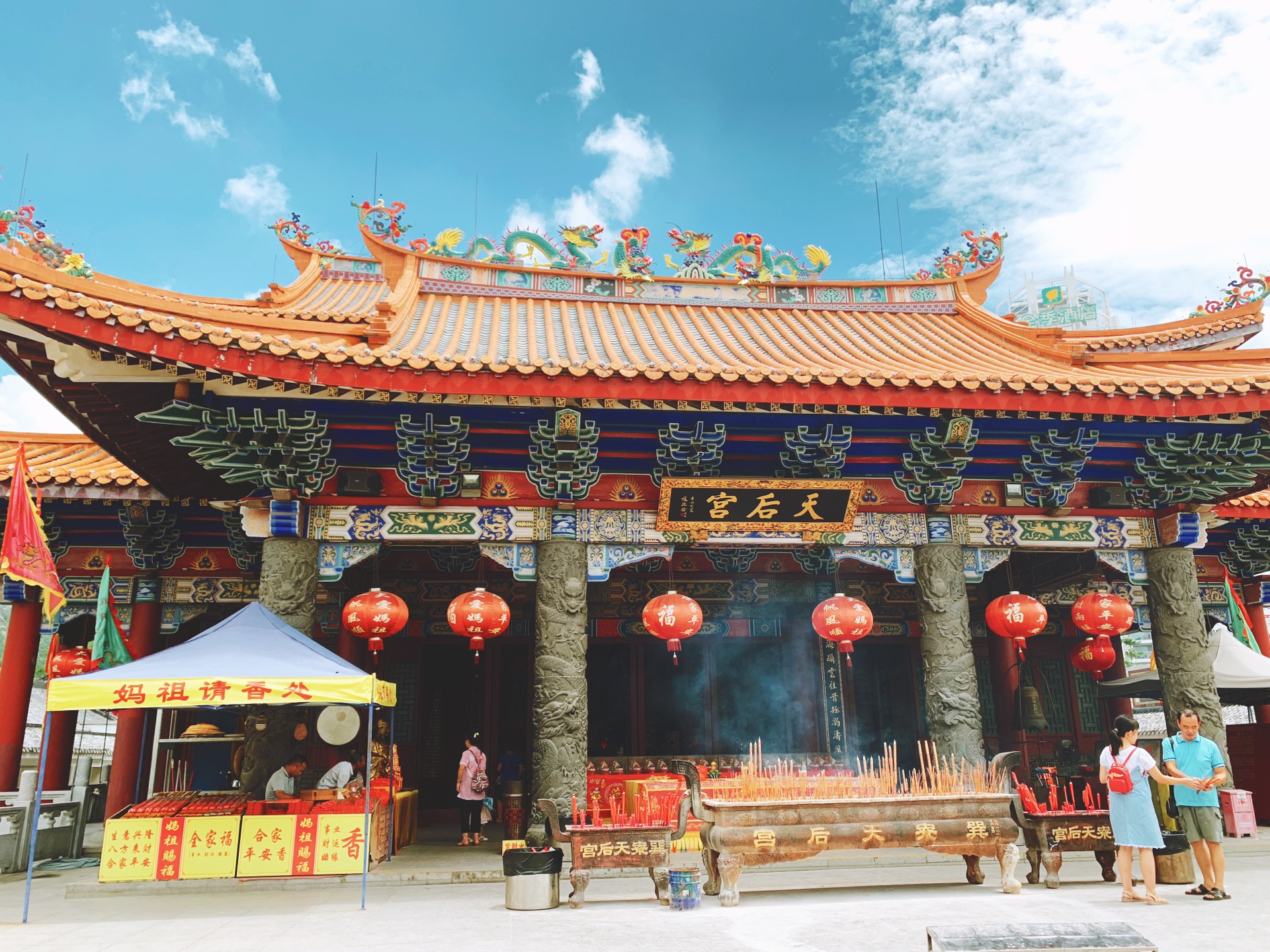 天后宫建筑宏伟、民风淳朴,是现存妈祖庙中建筑规模最大的一个,集天后宫祭拜、购物餐饮等活动于一体,当地人都会到这里祈求平安出海。