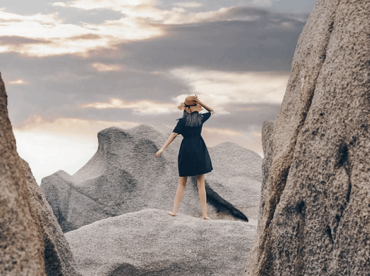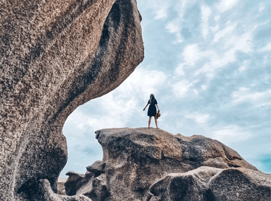 它是许多摄影师私藏的小众拍照地,沙滩细腻的白沙子踩上去超级舒服,巨大的石头屹立在蓝绿的海滩上,站在石林间拍照效果超A呦。