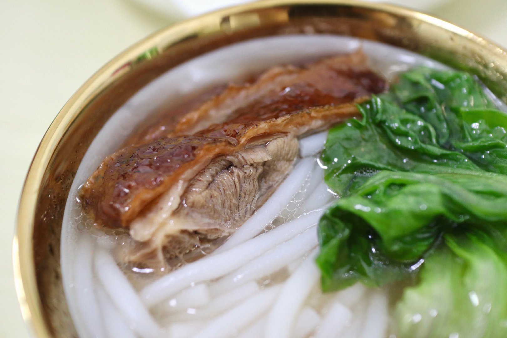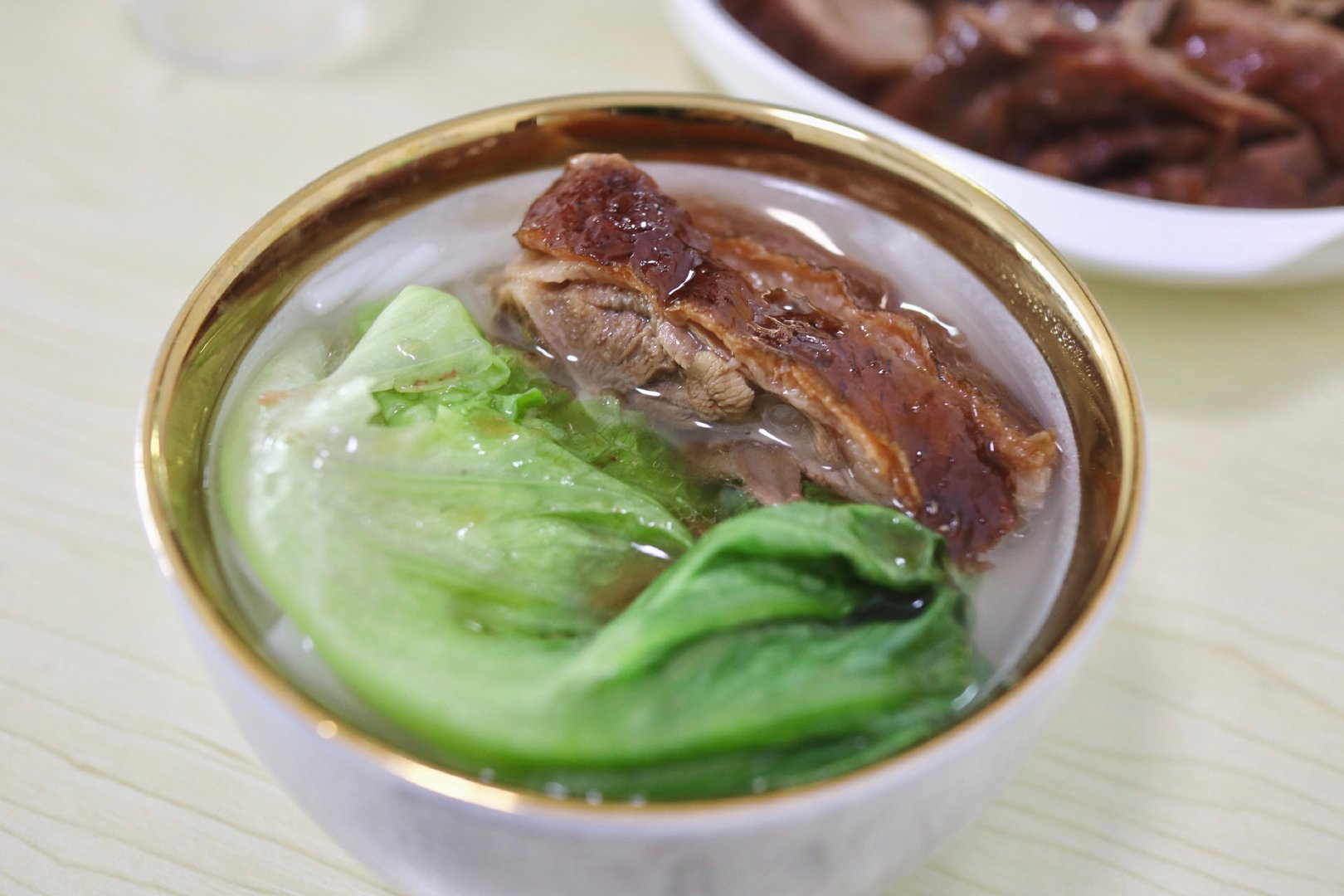 汤清爽滑的斋粉配着刚出炉外焦里嫩的烧鹅,濑粉的热度又进一步融化肥腴的油脂,使鹅肉更加丰盈多汁,无形间增添了几分醇香风味。