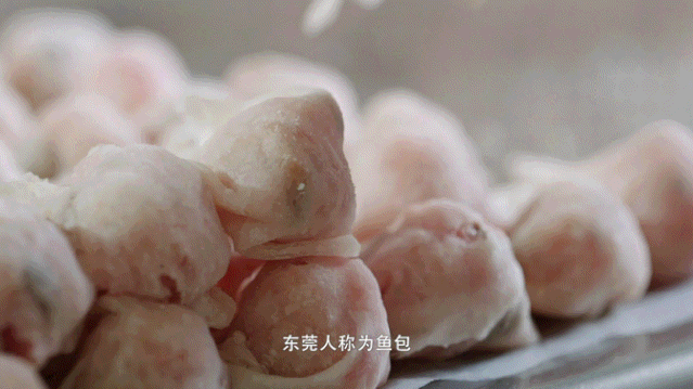 鱼包在东莞历史悠久,它将鲮鱼背脊肉做成的肉糊和面一起做成面皮,内馅有猪肉、腊鸭、冬菇等食材。煮熟的鱼包晶莹透亮、香气扑鼻~