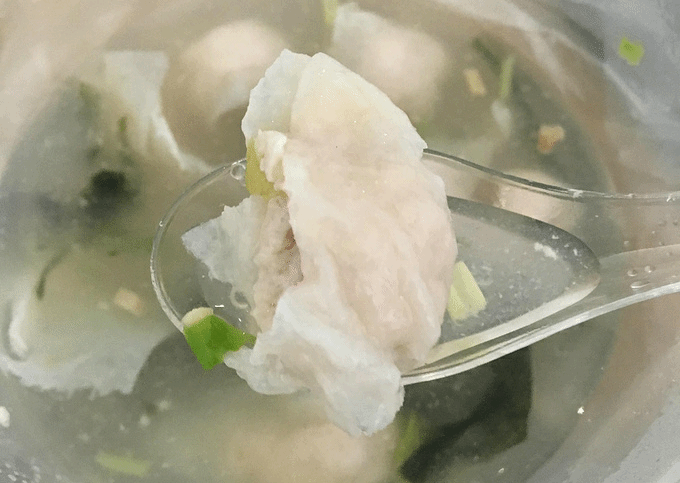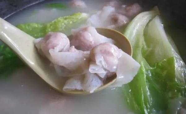 它的外形看上去类似云吞,除了火锅的食法,这种上汤鱼包也备受街坊喜爱。用甲鱼上汤,配以青菜,煮熟即吃,香甜爽滑,别具风味。