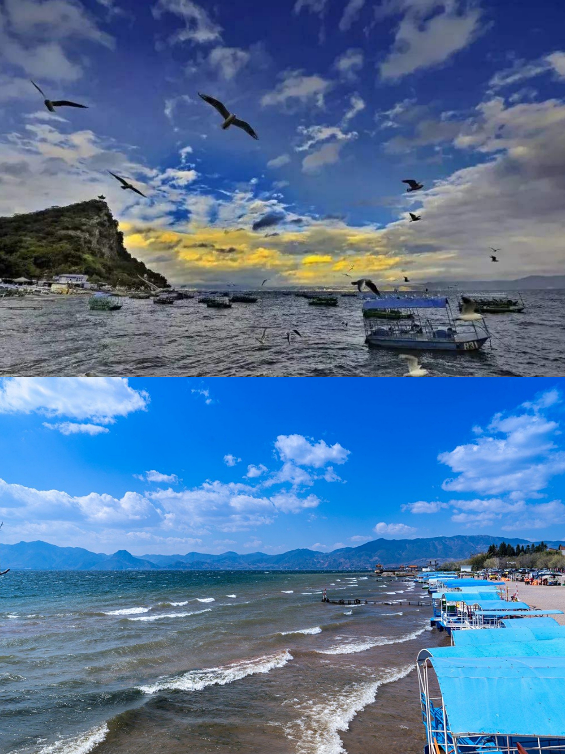💡DAY4:禄充风景区 🎯【禄充风景区】 ✔禄充风景区的落日是世界上最温柔的景色🌅 ✔岸边停靠的渔船装饰着这片湖🌊的宁静 ✔刺激的水上运动🚣🏻 ✔夜幕降临可以到海滩边的KTV🎤或者酒吧小酌一杯🍺,谈天说地,悠然自得 ✔众多当地美食 🌈仙湖石锅鱼:鱼汤鲜嫩,鱼肉很入味 🌈铜锅洋芋饭:抚仙湖的招牌饭 🌈路边摊的虾饼:现炸的,香气扑鼻