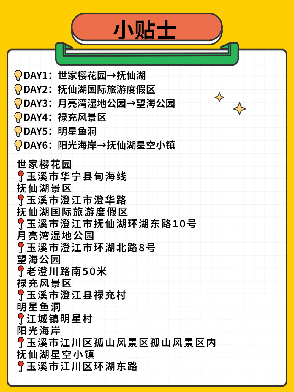 💡DAY6:阳光海岸→抚仙湖星空小镇 🎯【阳光海岸】 ✔众多拍照素材,沙滩,渔船,树叶🍀 ✔关键是竟然有钢琴🎹,不过有些生锈 ✔所以拍照的时候要找好角度 🎯【抚仙湖星空小镇】 ✔澄江的新晋网红打卡地 ✔以白色简约风为主,非常适合拍照 ✔内部还有房车露营可以体验🚍 ✔晚上前往湖边,有一种星🌠辰大海的感觉 ✔据说以后还会建造星空观测站,大家敬请期待吧🌌
