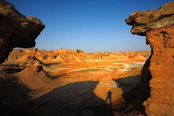 【克孜尔魔鬼城】 克孜尔魔鬼城位于阿克苏拜城县东部克孜尔乡和黑英山乡境内,它的规模是乌尔禾魔鬼城的3-4倍,一路都是雅丹地貌,风雨侵蚀塑造出鬼魅的山丘轮廓,使它被誉为“风刀创作的艺术殿堂”。