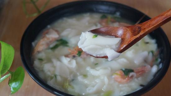 锅边:曾被《早餐中国》推荐,是一种米糊制品,先在锅边倒上,等它成型了之后再倒入汤头。