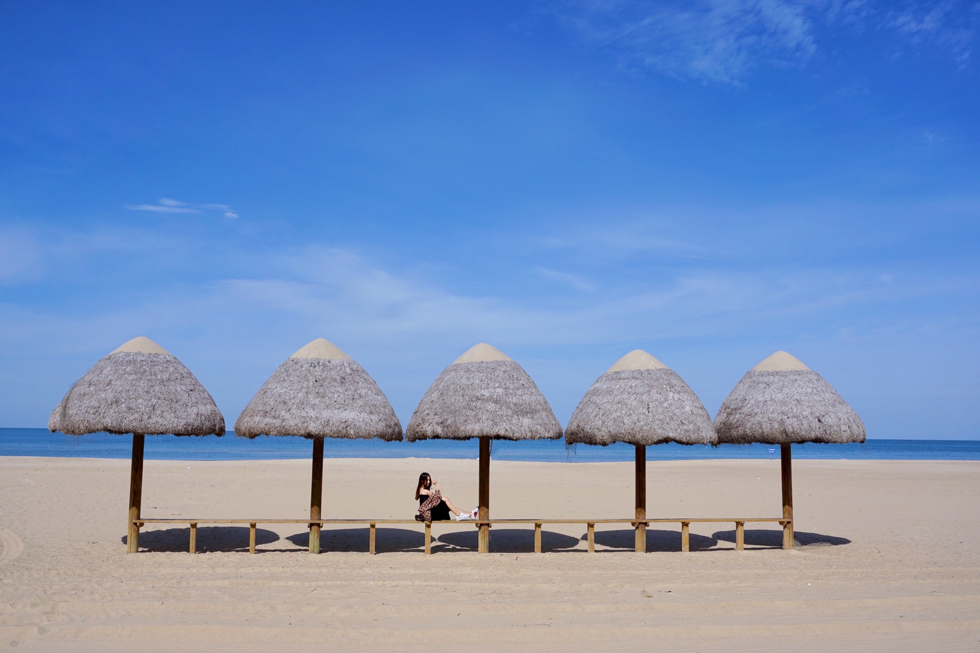 ⭐那香海 这里的钻石沙滩 这里被称为“纹石宝滩”,是中国大陆最美八大海岸之一,有着细软的白色沙滩、干净的蓝色大海、沿途转动的风车。 下午去Black coffee网红咖啡馆喝杯咖啡,木质结构的三角形建筑在海边屹立着,有点像韩国济州岛的风格。