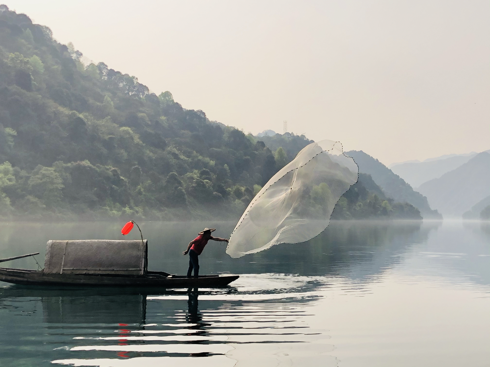 ⭐东江湖:早早起床去东江湖看雾漫小东江,渔夫撒网,在雾气氤氲中看渔家踏歌而来,一派山林野趣。