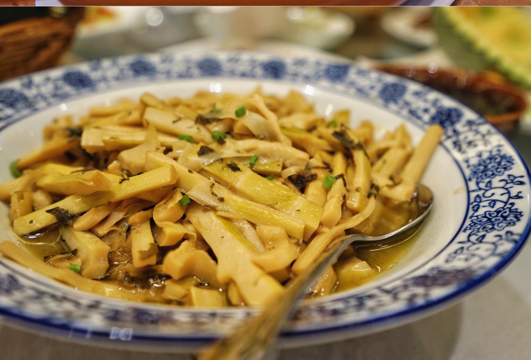 到了溧阳,这里有著名的南山竹海,所以竹子也是这里的一大特产,那竹笋是千万不能错过的应季美食了!竹笋烧法有很多,只有竹笋的葱油竹笋,或者作为荤菜伴侣的菜,都是必尝!
