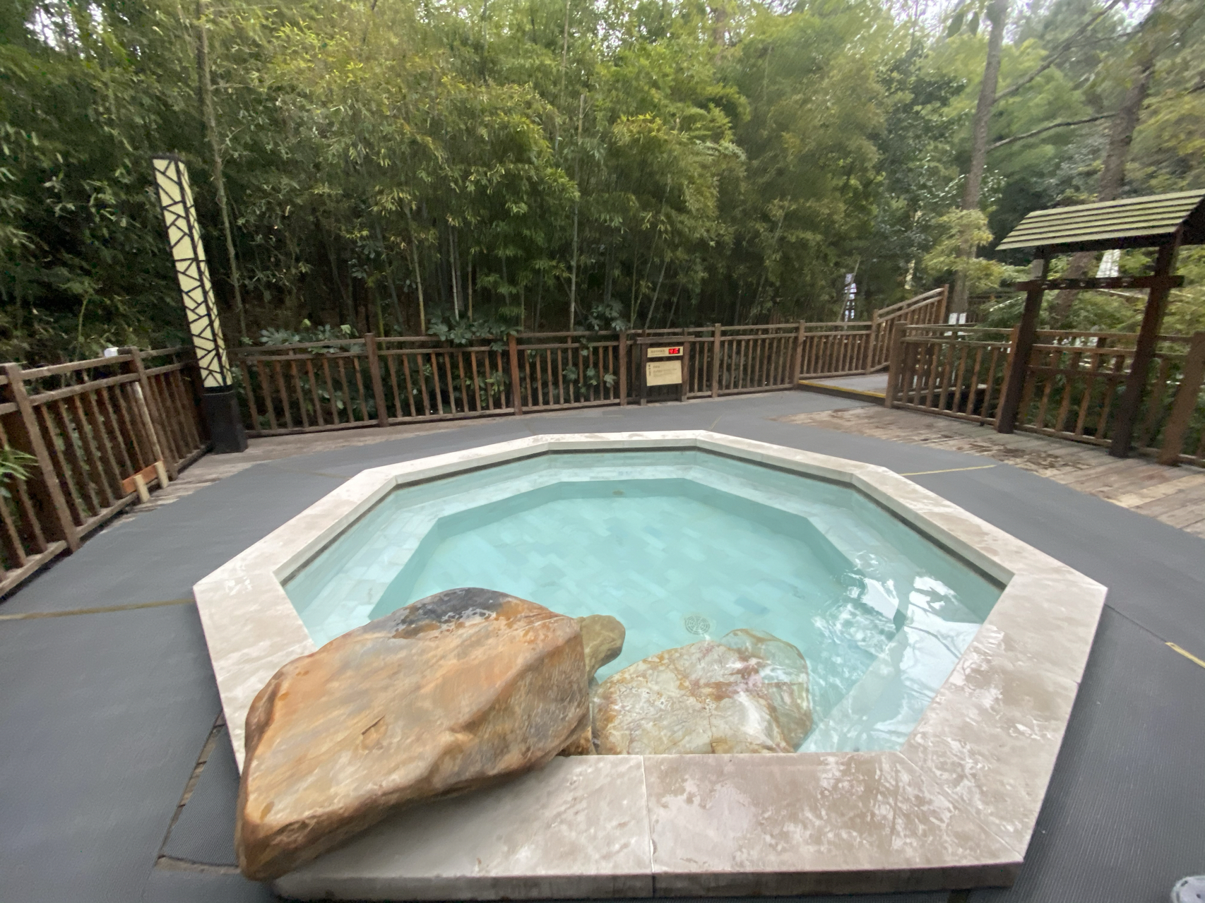 温泉在天目湖畔,三面环湖,一面依山,庭院式的风格,只需步行5分钟就能到达天目湖山水园景区。半岛温泉拥有五个精致鲜明的室外温泉池,有玫瑰池、人参池、牛奶池等,根据不同季节温泉都会推出不同主题的温泉养生汤池,不同的时间来可以体验不一样的养生汤池哦。