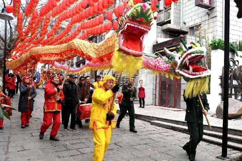 ↓↓↓偶遇舞龙队。听展馆讲解说,连云老街会有民国风走秀、工鼓锣、淮海戏、活体铜雕之类的活动,但是偶遇哪一个看缘分。