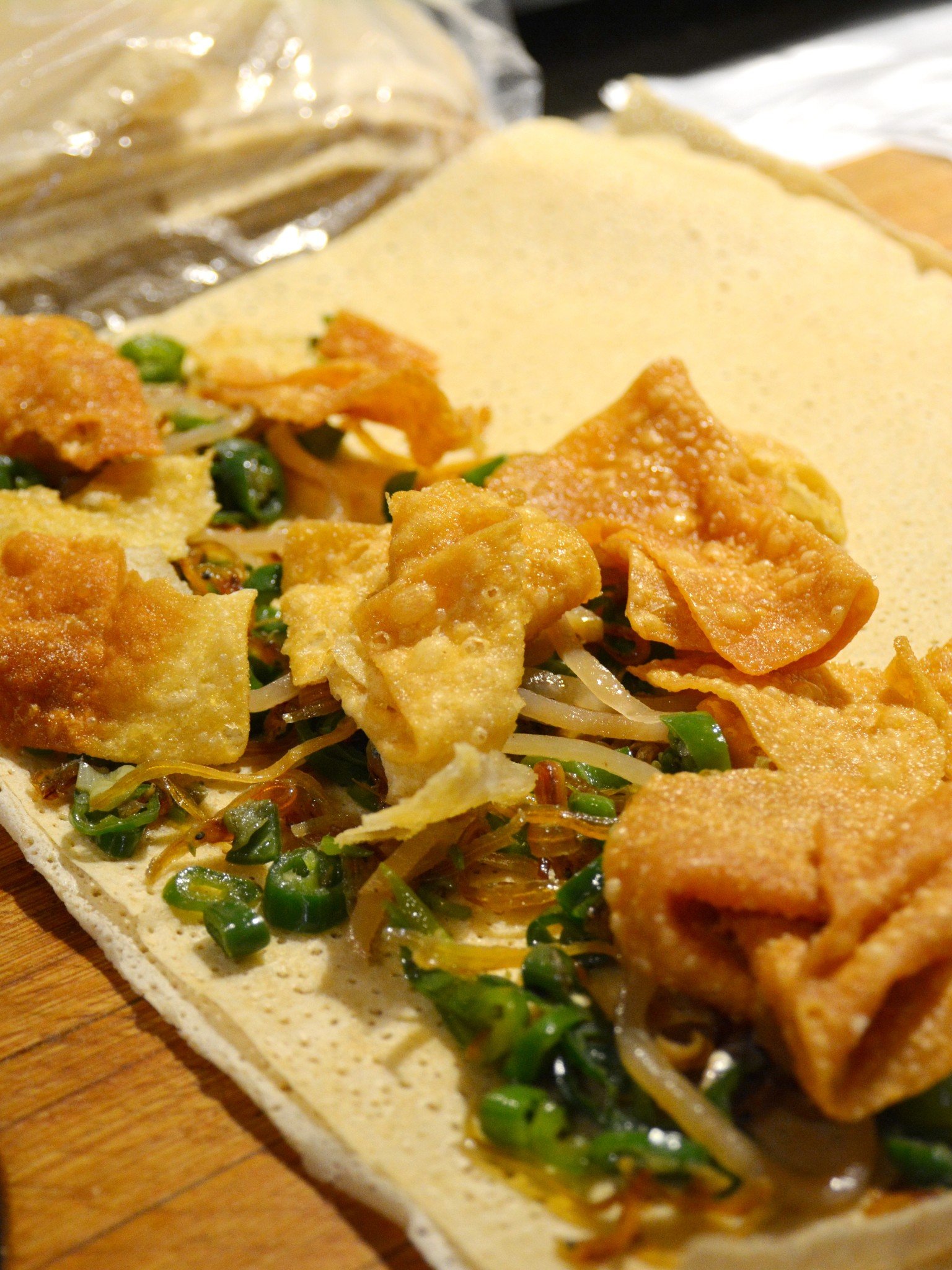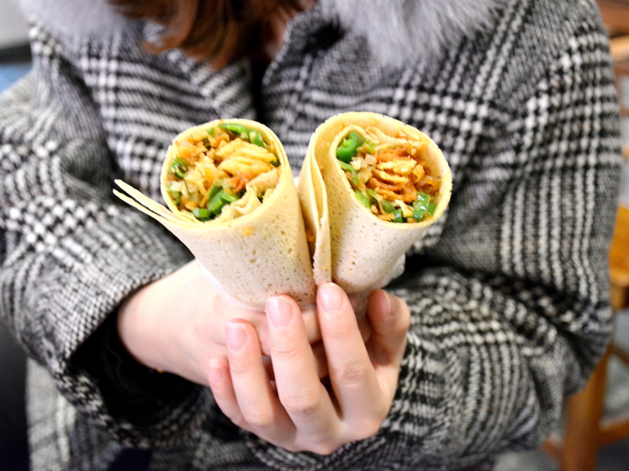 ↓↓↓本地的地道美食-小鱼煎饼,又称呼银鱼煎饼,味道酸爽无比。 说是一块饼,可别小看这一块饼,其用料是极其讲究的。什么辣椒啊、银鱼啊,几乎样样都讲究。