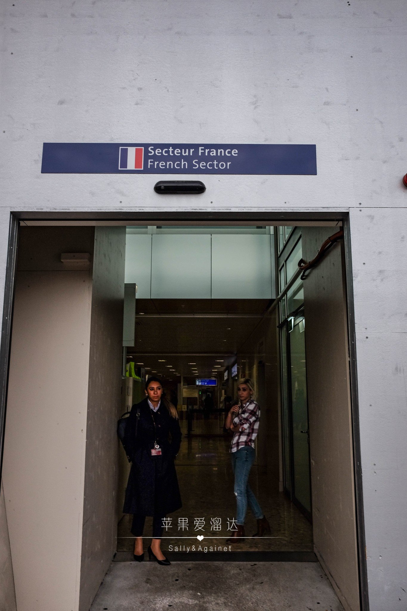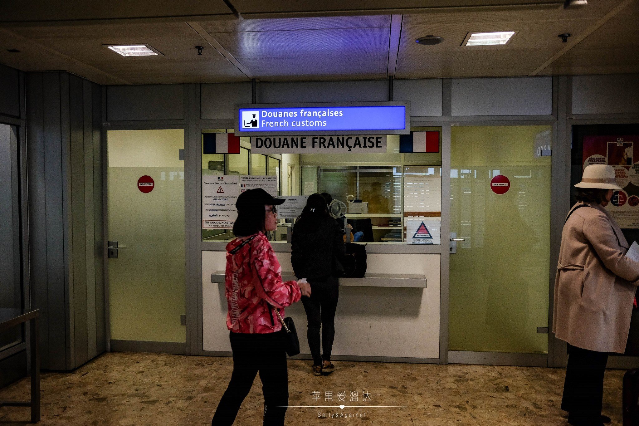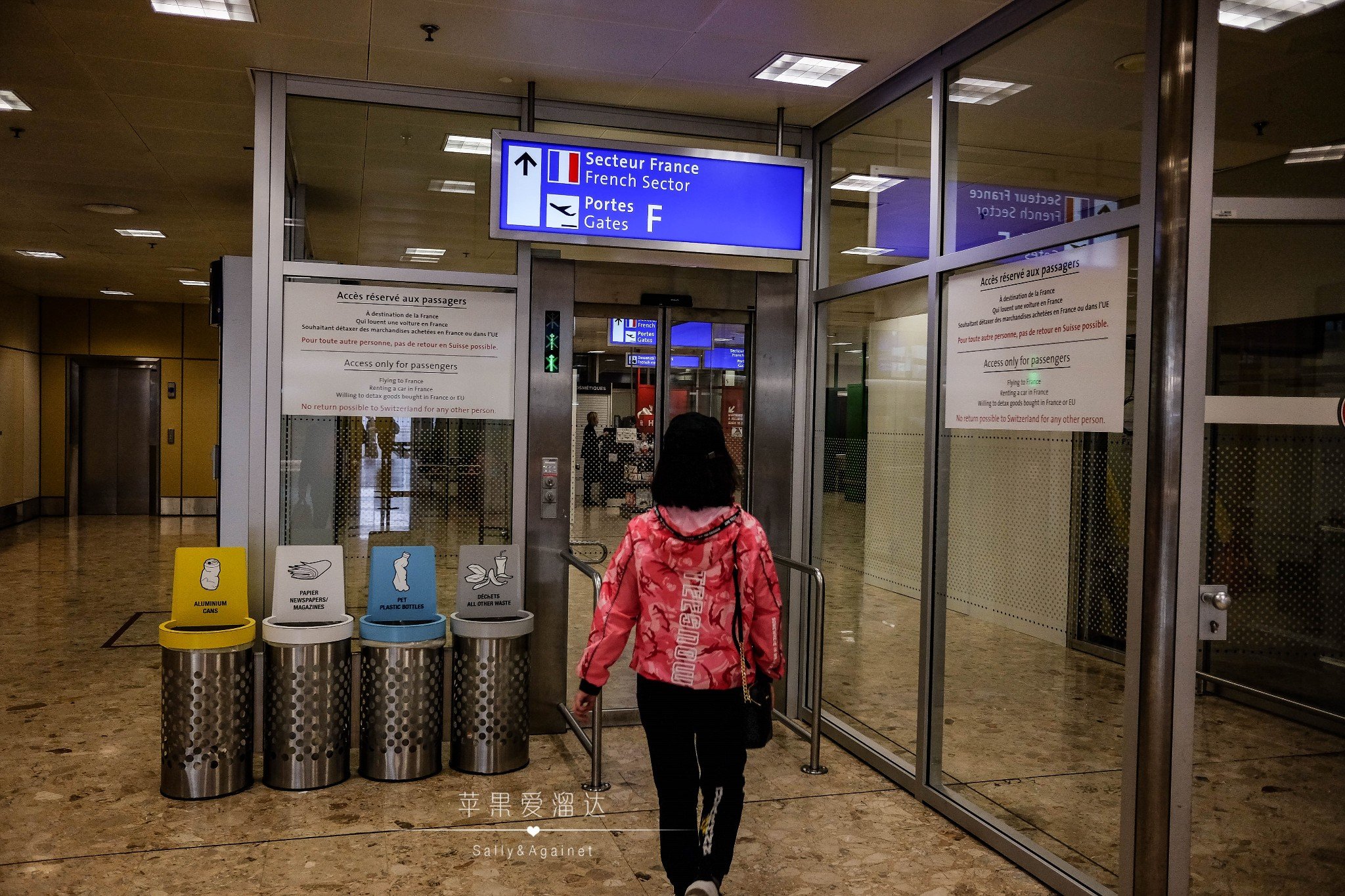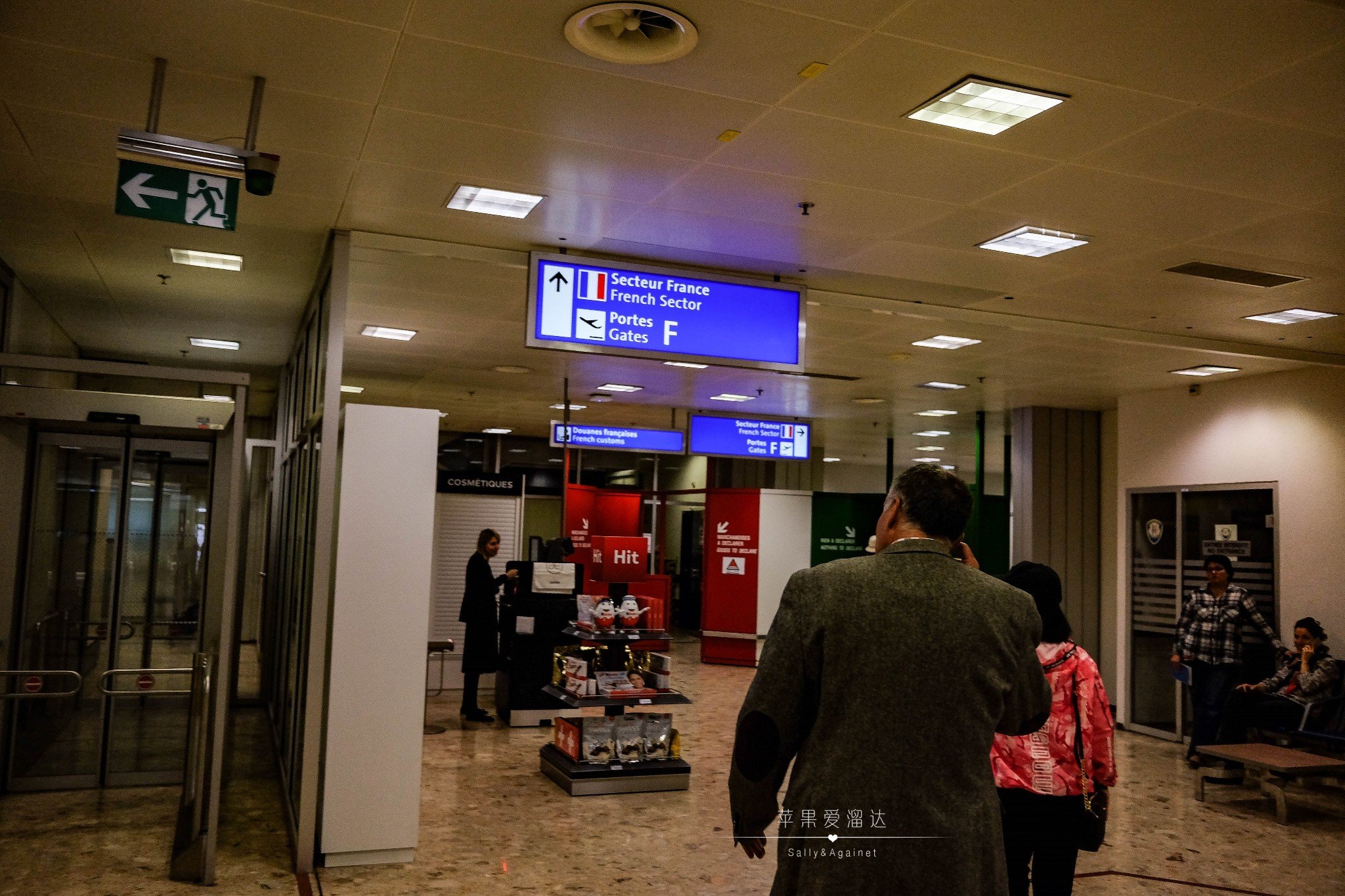 走进去以后再笔直走,你就可以看到一个写着法国海关和F口的自动门,继续往里走。