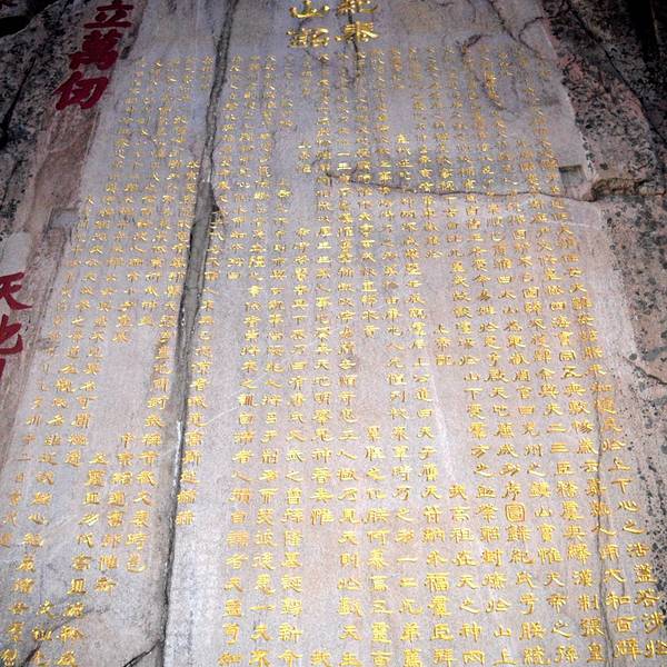 沿盘道继续北上,前方有一堵天然石壁巍然屹立,石壁上题刻遍布,洋洋大观,人称“大观峰”,又称“唐摩崖”过圣水井,沿盘道继续北上,前方有一堵天然石壁巍然屹立,石壁上题刻遍布,洋洋大观,人称“大观峰”,又称“唐摩崖”。来到大观峰前,看着这密密麻麻的石刻,真的是惊翻了!这里的历代题刻层层叠叠,几乎没有人...过圣水井,沿盘道继续北上,前方有一堵天然石壁巍然屹立,石壁上题刻遍布,洋洋大观,人称“大观峰”,又称“唐摩崖”。来到大观峰前,看着这密密麻麻的石刻,真的是惊翻了!这里的历代题刻层层叠叠,几乎没有人数的过来,据说不包括被压盖的就有七、八十处,这里几乎就成了古人的留言板!这些石刻刻中,最引人瞩目的是唐玄宗李隆基封禅 泰山 时亲笔书写的《纪 泰山 铭》,摩崖碑高13.3米,宽5.7米,全文共有1008个字,是唐玄宗东封 泰山 歌功颂德的记事碑。 展开