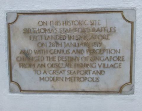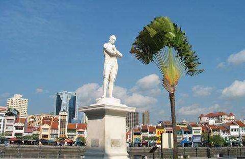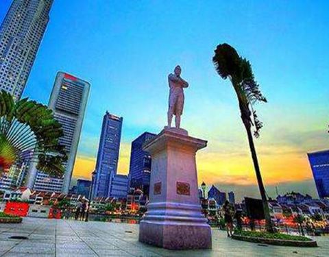 莱佛士登岸遗址。码头上矗立着莱佛士爵士铜像,铜像是为纪念莱佛士爵士这位新加坡的开埠者而立。莱佛士爵士将新加坡称为“我的小孩”,而新加坡人则尊称他为“国父”。
