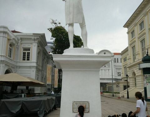 这里有新加坡的缔造者——莱佛士爵士的雕像,历史的脚印在这里踏下。是一个纪念莱佛士的雕像