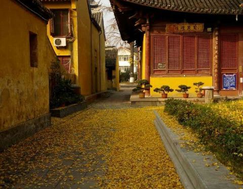天宁寺是个千年古刹,静静地坐落在南通中间。在繁华中闹中取静。庙不大,天宁寺的秋天特别美。里面的银杏都是三百年以上的。秋风吹过,黄页铺满地面。在里面散步,感觉特别宁静